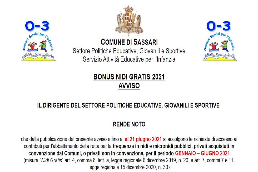 Leggi tutto...Il Comune di Sassari fa sapere che, fino al 21 giugno, sarà possibile fare domanda per l’ottenimento di un Bonus (misura RAS) che permette, sotto specifici massimali, di contribuire o...